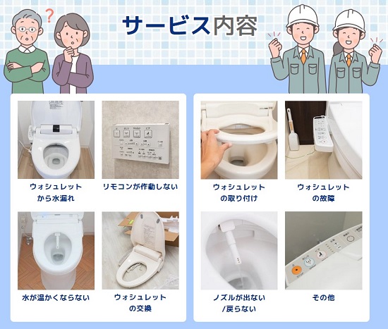 足立区で対応可能な温水便座、ウォシュレットの修理サービスとなります。その他のトラブルやご相談に関しましてはお気軽に受付窓口までお問い合わせください。