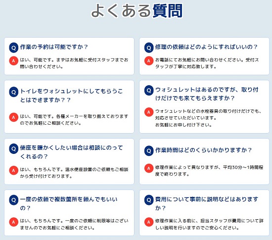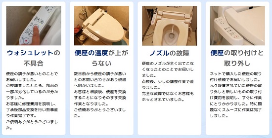 足立区で対応可能な温水便座、ウォシュレットの修理サービスとなります。その他のトラブルやご相談に関しましてはお気軽に受付窓口までお問い合わせください。